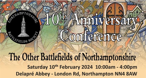To mark the 10th anniversay of its founding, the Northamptonshire Battlefields Society is hosting a one day conference with the Delapre Abbey Preservation Trust to discuss the lesser known battlefields of Northamptonshire.