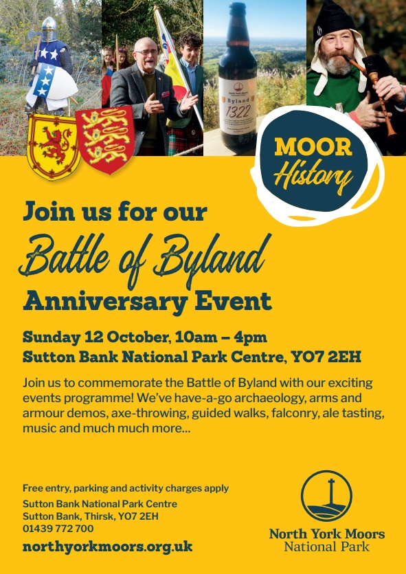 The annual commemoration of the 1322 Battle of Byland at Sutton Bank National Park Centre YO7 2EH. 10am-4pm.