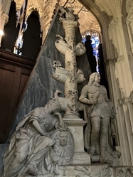 The inscription does not mention George Monck but names those who erected memorial under the terms of the Will of Christopher, Duke of Albemarle, Monck's son.