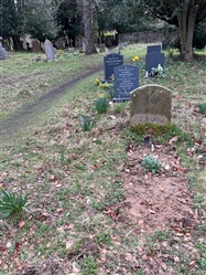 When first interred the burials were commemorated with a simple wooden cross (see image), but this was replaced, sometime after July 2018, with a headstone. Upon entering the cemetery via the lichgate the grave is the first one that is marked by a headstone, located to the right of the grass path. The grave contains the remains of 28 Scottish Soldiers who had been captured at the battle of Dunbar on 3 September 1650 and who were marched to Durham Cathedral. Owing to privations experienced on that march approximately 1700 prisoners died at Durham and were buried in mass graves at Palace Green, Durham. In November 2013 building works at the Palace Green Library unearthed human remains. Exhumations were undertaken and 28 individual skeletons were identified. After extensive research was carried out the 28 individuals were reburied at Elvet Hill Road Cemetery on 18 May 2018. The 28 individuals were buried in a single casket and in a single grave that has a headstone.