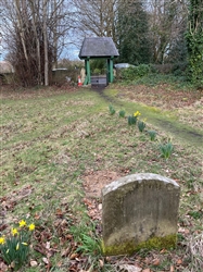 The headstone is discoloured and partly overgrown with lichen.