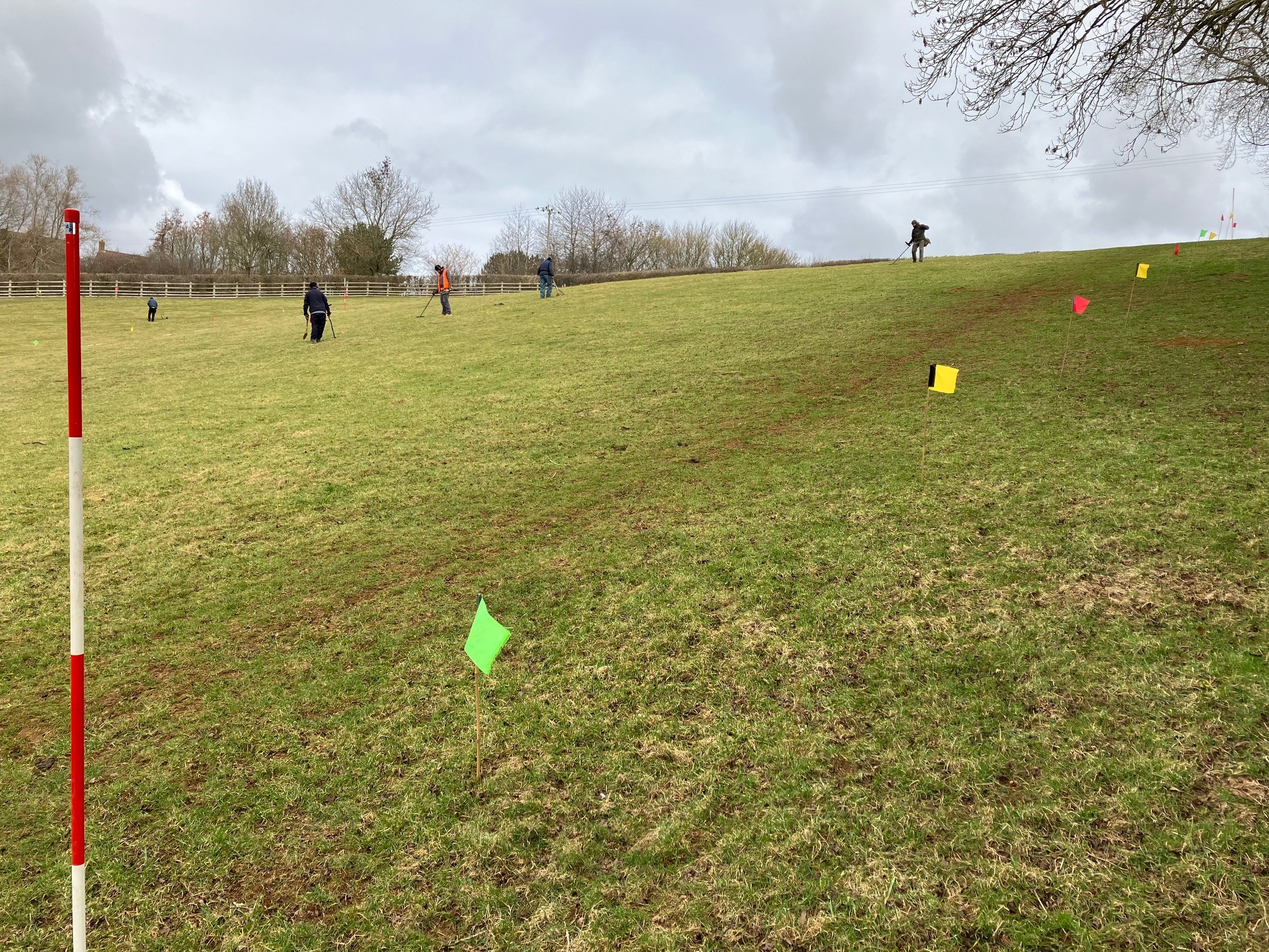An experienced battlefield metal detecting team was involved in the survey which followed established battlefield archaeology methodologies. Detectorists used five metre wide transects to detect along with the aim of providing consistent coverage.