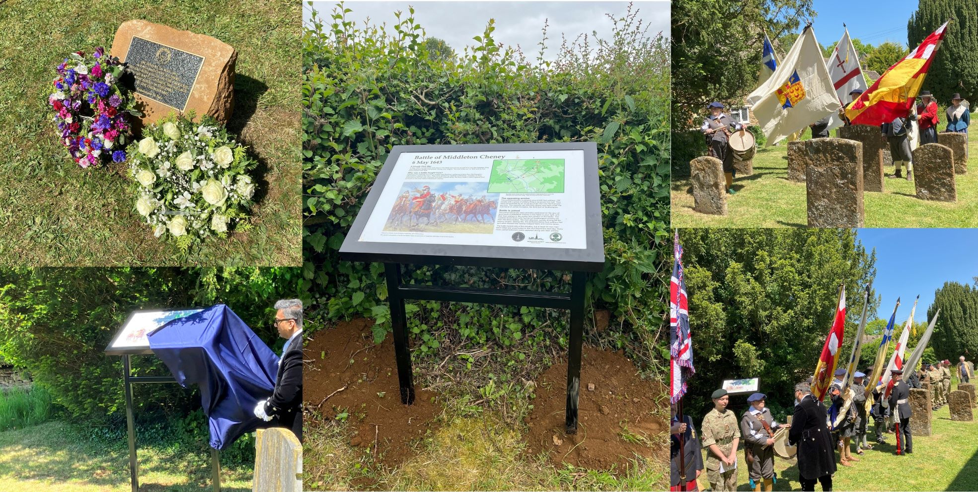 The county’s High Sheriff, Milan Shah, revealed the information board, which had been generously donated by the DHB Group at Chacombe and will be permanently installed close to the battle site.