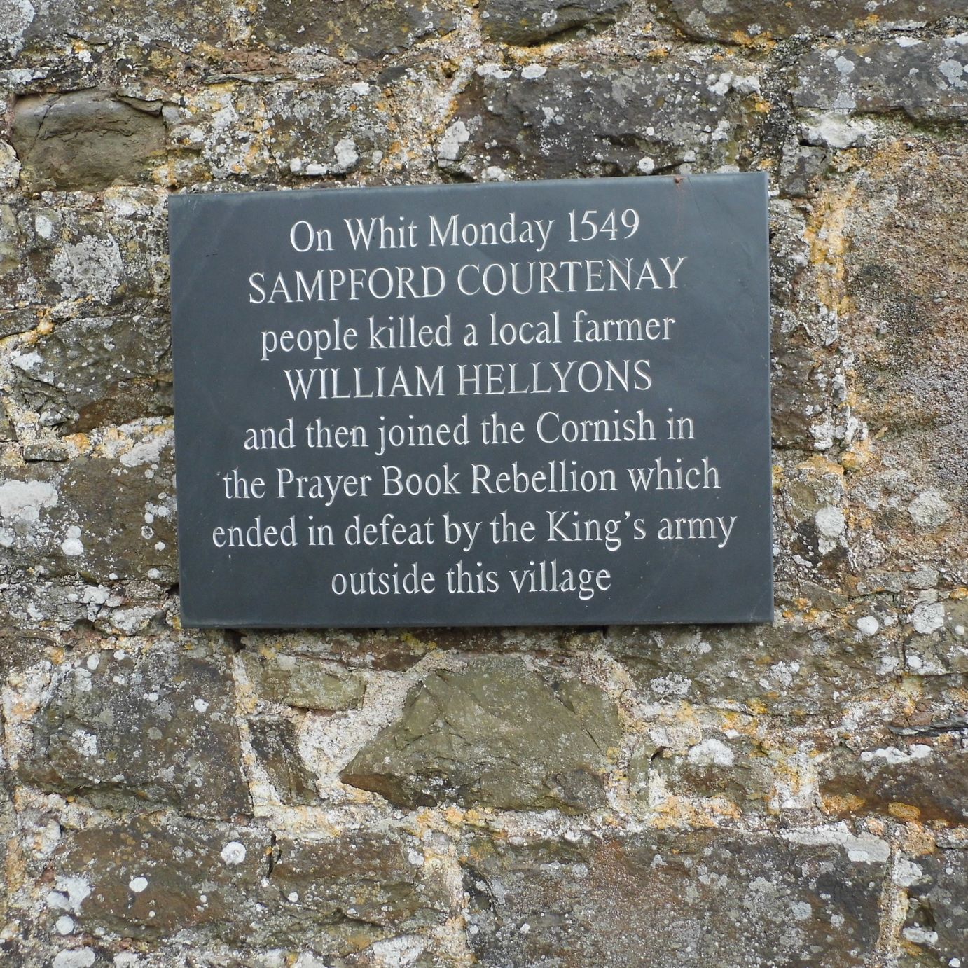 The Prayerbook or Western rebellion was one of the uprisings that took place in 1549 against economic and religious changes introduced by king Edward VI’s government. It started at Samford Courtenay in early June and ended at the battle there on 18 August.