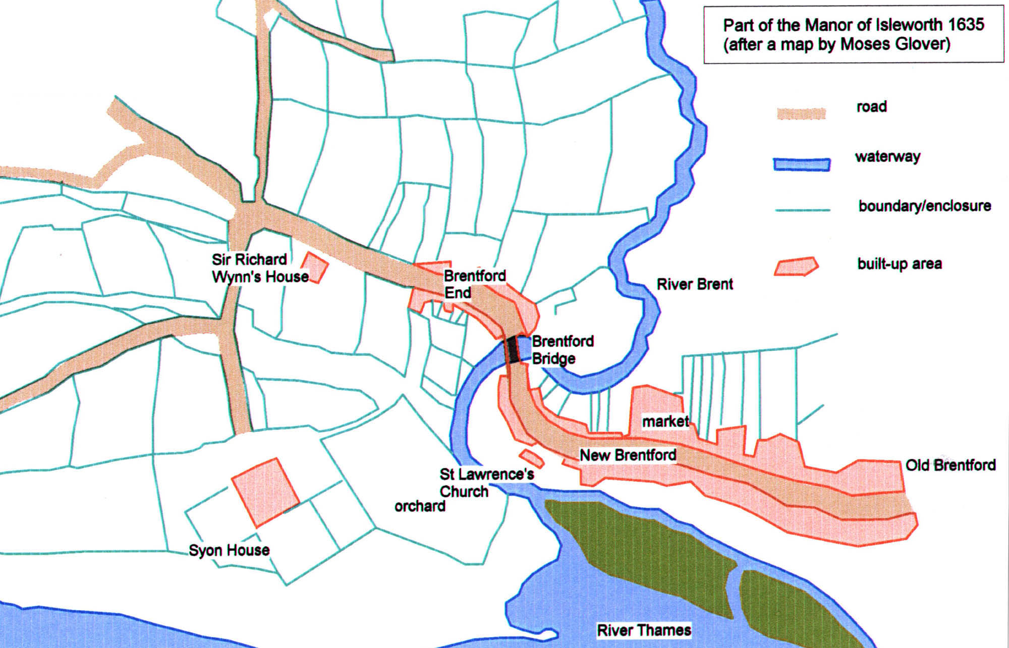 Description: Brentford in 1634, from Gover's Map.