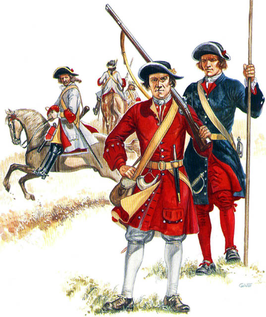 Musketeer, pikeman and cavalry trooper from the campaigns in Ireland in the 1690s.