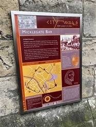 The severed heads of rebels and traitors were once displayed on Mickelgate Bar. Intended as a warning, heads or other body parts were skewered on pikestaffs and placed on the roof. Victims included Sir Henry Percy (Hotspur) in 1403 and Richard, Duke of York in (1460); 'Off with his head and set it on York gates; so York may overlook the town of York' cried Queen Margaret in Shakespeare's Henry VI.